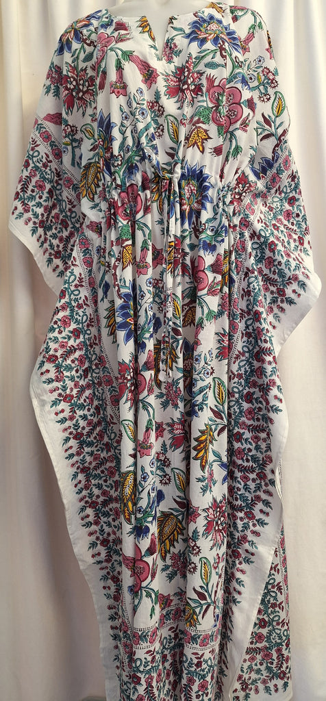 Anokhi Tie Kaftan - White with Blue Pink and Yellow