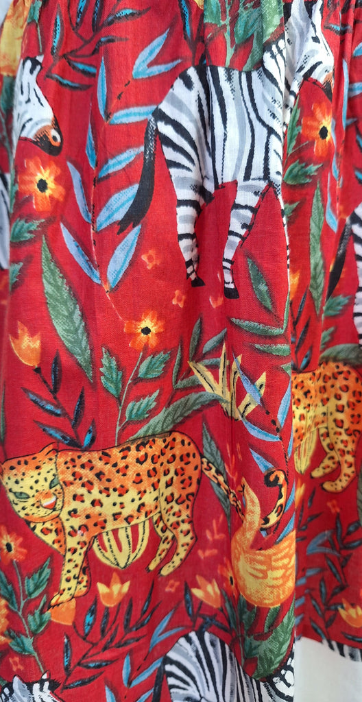 100% Cotton Animal Print Dress - Red
