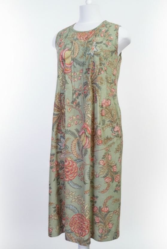 Exotic Flower Cotton Dress – Green
