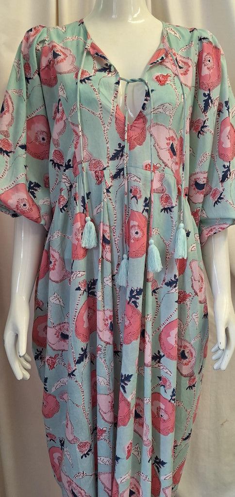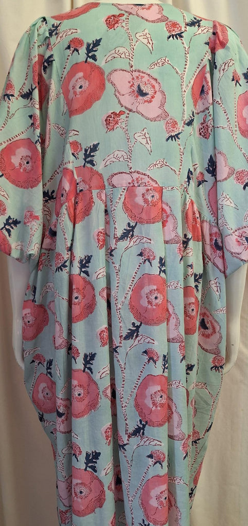 Crafted from 100% pure cotton sourced from India, this dress is a celebration of timeless craftsmanship and natural beauty. Each piece is hand block printed by skilled artisans using age-old techniques passed down through generations. Dyed with natural, plant-based colors, the fabric is free from harsh chemicals, making it gentle on your skin and the environment.