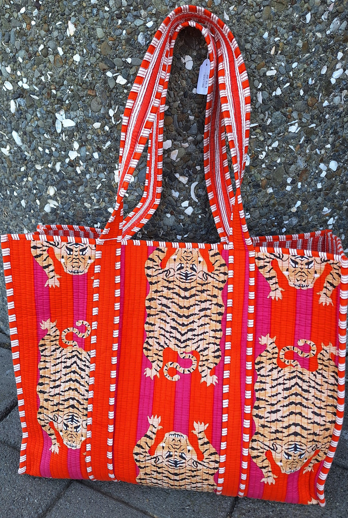 Handcrafted with care, our lightweight totes feature machine quilting, for a touch of texture and charm. Each bag is fully reversible, with a striped lining and an inner pocket—two looks in one!