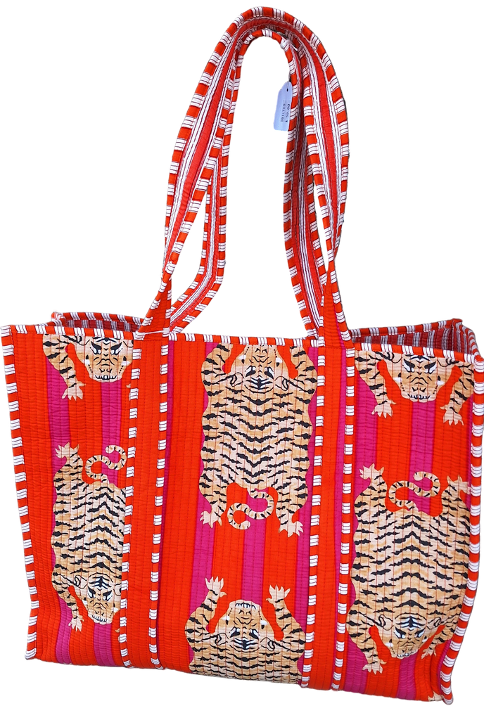 Tiger Print Tote Bag - Orange and Hot Pink